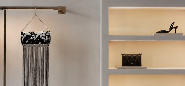 With a seventies vibe, the store combines marble walls painted with limewash effect paint, mirror structures, and artisanal furniture to create a unique atmosphere.