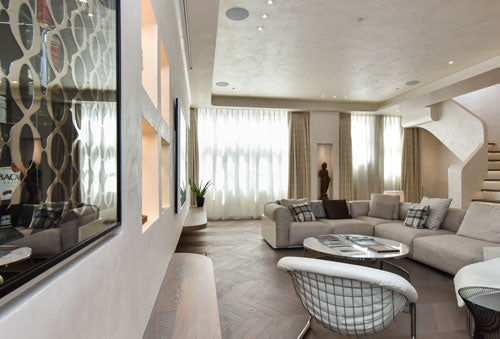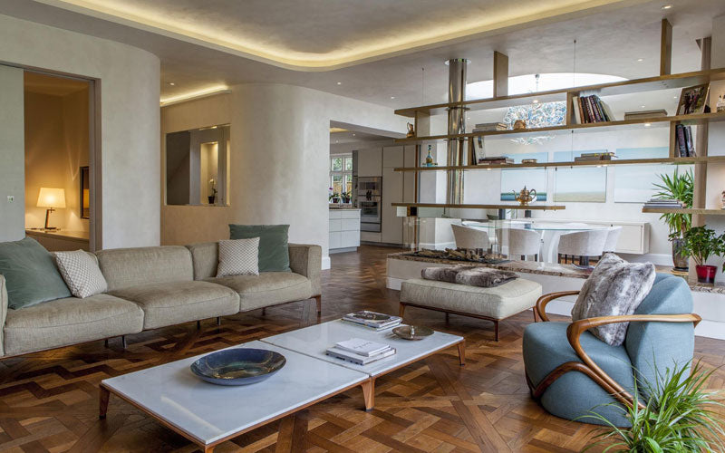 We completely refurbished a 3600 sq ft penthouse in Kensington Palace Gardens, turning it into a spectacular entertainment space illuminated by a very discreetly lit, oval dome like ceiling feature.  I am very passionate with lighting because it highlights architectural elements that are otherwise difficult to highlight, even though I prefer not to see the light source when possible. Good lighting creates magical environments.