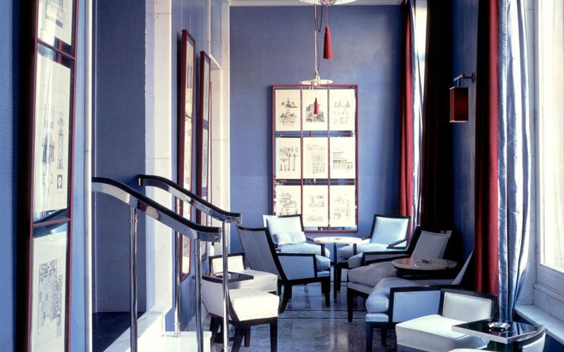 A designer I like a lot is David Collins; unfortunately he is no longer with us.  He designed the most beautiful restaurants and bars. My favorite is the blue bar at the Berkeley Hotel.