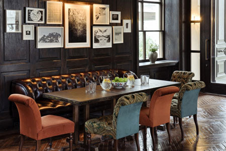 For example, we picked the wallpaper for the restaurant section of this pub on Kew Green to bring some botanical elements as they were so close to Kew Gardens. From there, we selected the upholstery fabrics which not only had to be practical but also added warmth, colour and interest. We added punchy colours on some lampshades.