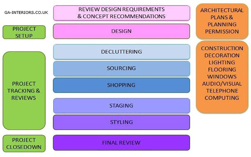 My design process begins with the concept of initial thoughts and ideas, taking a client’s ideas and conceptualising them into a skeleton design. The ideas and then tailored into a detailed design to include a mood board (with product samples for paint, wallpaper, fabric, tiles, flooring etc), furniture and room layouts, electrical plans, bespoke furniture designs and a budget breakdown. These enable my clients to completely visualise the space, understanding how much it will cost and how it will all come together to create the space of their dreams.